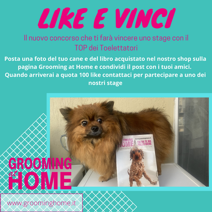 Posta una foto del tuo cane e del libro acquistato sul nostro shop sulla pagina Facebook Grooming at Home e condividi il post con i tuoi amici.